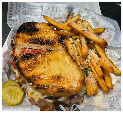 Seasoned steak topped with melted pepperjack cheese, sauteed onions, roasted red peppers, and horseradish aioli.
